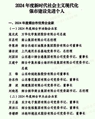 日前,中共煙臺(tái)市委、煙臺(tái)市人民政府公布了2024年度煙臺(tái)市優(yōu)秀企業(yè)家名單,集團(tuán)公司唐波董事長(zhǎng)榮獲“2024年度煙臺(tái)市功勛企業(yè)家”稱號(hào)。
